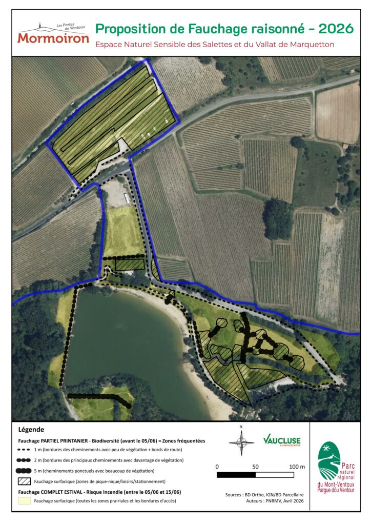 Avec l’appui du Parc du Mont-Ventoux, la commune de Mormoiron met en œuvre sur l’Espace Naturel Sensible des Salettes et du vallat de Marquetton, une gestion différenciée des espaces naturels fondée sur le fauchage raisonné.